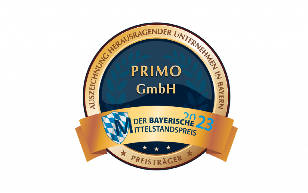 Seit 2023 zählt Primo zu den glücklichen Gewinnern des Bayerischen Mittelstandspreises. Ausgezeichnet werden vom Europäischen Wirtschaftsforum mittelständische Unternehmen, die eine wichtige Säule der Wirtschaft und der Gesellschaft sind.